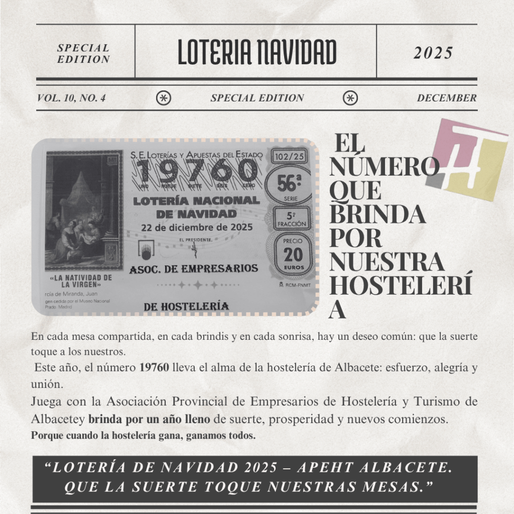 #APEHT #LoteríaDeNavidad #HosteleríaDeAlbacete #Albacete #SuerteCompartida #Navidad2025 #BrindisDeIlusión #HosteleríaConCorazón
